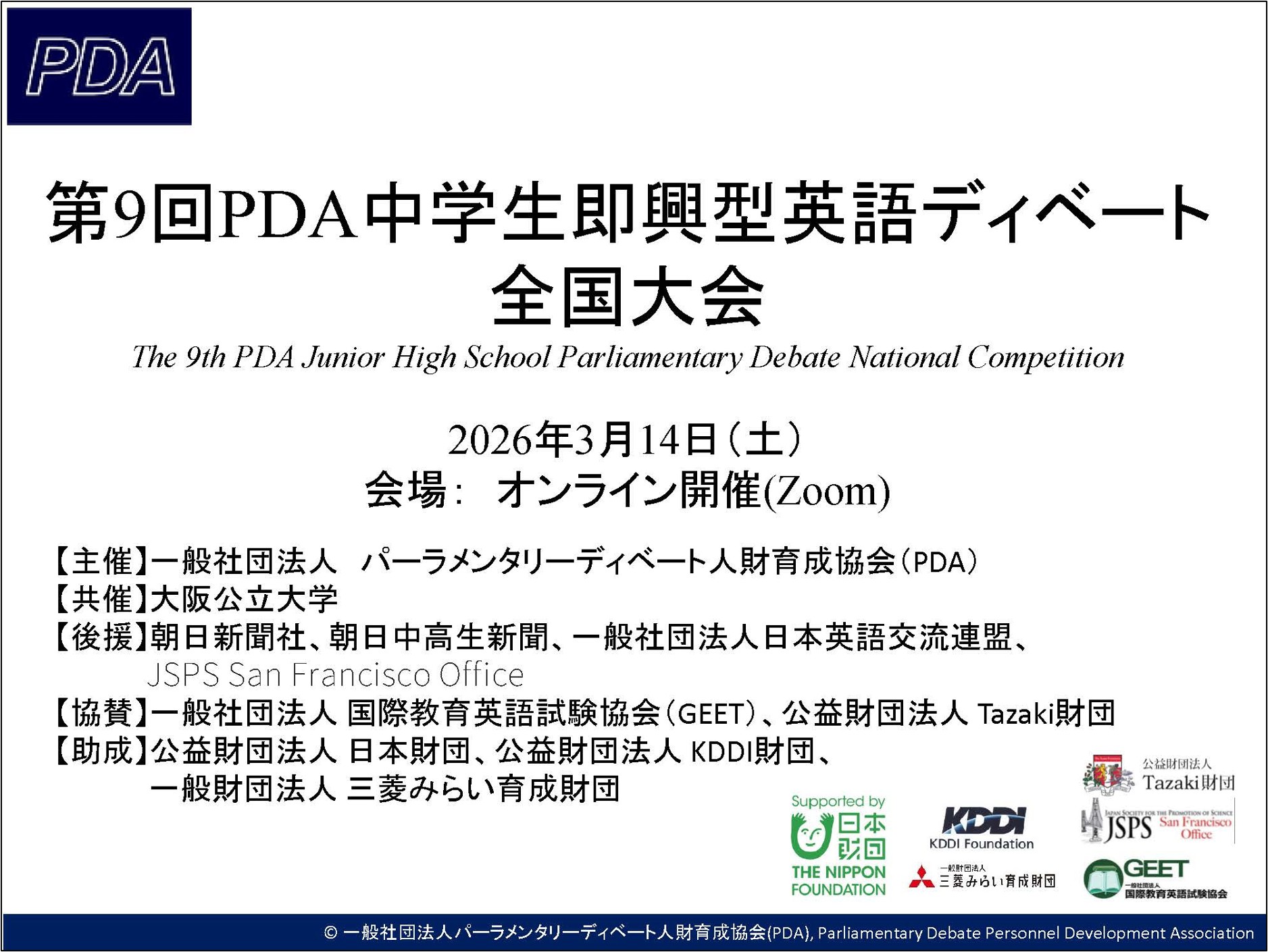 第5回PDA高校生即興型英語ディベート全国大会(5周年記念事業)